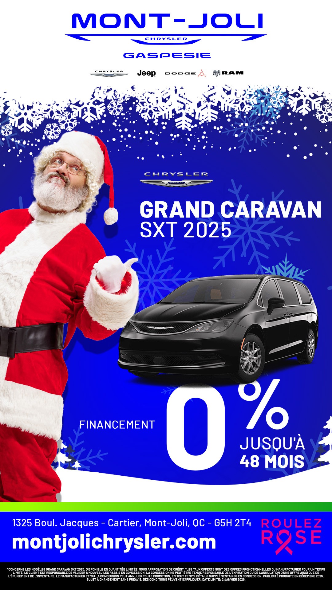 Votre concessionnaire Mont-Joli Chrysler est la référence lorsque vient le temps de magasiner un véhicule neuf ou d’occasion à vendre en Gaspésie ! Stratégiquement situé, ce concessionnaire près de Matane vous offre les meilleurs prix de la région sur une vaste sélection de modèles ; ne tardez plus et venez nous rencontrer pour choisir le vôtre dès aujourd’hui !