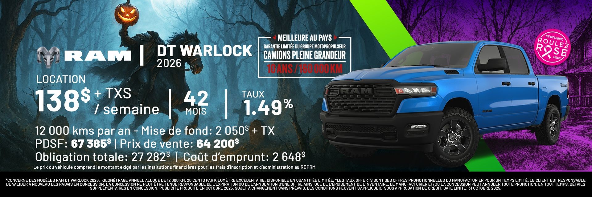 Enfin, votre concessionnaire à Mont-Joli dispose d’un choix impressionnant de camions Ram, neufs et usagés. Disponibles en une foule de configurations caisse-cabine et pouvant être personnalisés grâce à leurs nombreuses options de roues et de couleurs de carrosserie, les camions Ram se démarquent également par leur rapport qualité-prix avantageux de même que par leurs solides compétences en matière de remorquage et de capacités 4X4.
