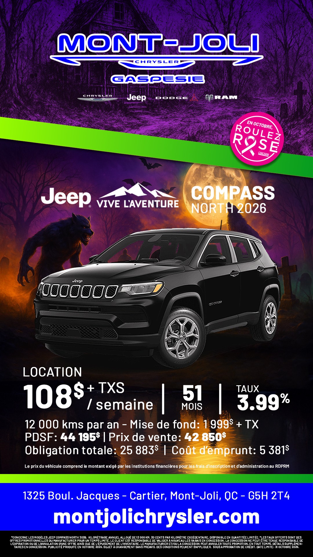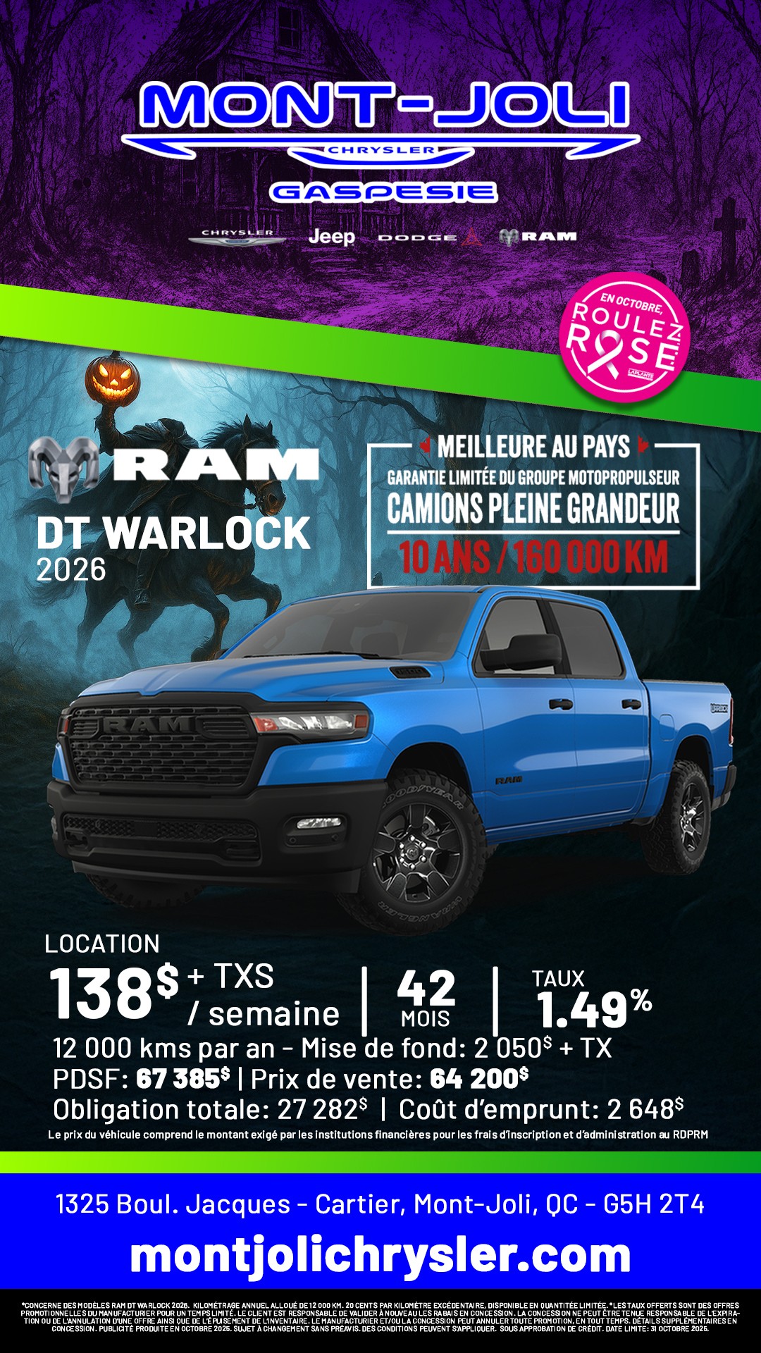 Vous pouvez avoir la certitude que chaque voiture que nous proposons est conçue pour offrir une expérience de conduite incomparable. Chez Mont-Joli Chrysler, nous mettons l'accent sur la qualité, et cela se reflète dans chaque véhicule que nous vendons. Nous sommes déterminés à vous proposer les meilleurs prix possibles pour les véhicules Chrysler, Jeep, RAM et Dodge de haute qualité que nous offrons. Grâce à nos offres spéciales et à notre engagement envers la satisfaction de nos clients, nous vous garantissons une excellente valeur pour votre argent. Alors, si vous recherchez la quintessence des véhicules Chrysler, Jeep, RAM et Dodge à Mont-Joli, venez nous rendre visite aujourd'hui. Découvrez notre sélection de voitures exceptionnelles qui incarnent la qualité, la performance et l'élégance. Chez Mont-Joli Chrysler, votre quête de l'excellence automobile commence ici.À la recherche d'offres imbattables sur les véhicules Chrysler, Jeep, RAM et Dodge? Ne cherchez pas plus loin! Chez Mont-Joli Chrysler, nous sommes fiers de vous proposer des promotions exceptionnelles sur toute la gamme de véhicules Chrysler, Jeep, RAM et Dodge. Que vous soyez intéressé par une berline élégante, un puissant camion 4x4, un VUS spacieux ou un véhicule utilitaire robuste, nos offres spéciales sont conçues pour vous offrir un rapport qualité-prix inégalé. Nos promotions en cours vous permettent d'économiser gros sur l'achat d'un véhicule Chrysler, Jeep, RAM et Dodge neuf ou d'occasion. Profitez de rabais exceptionnels, de taux de financement avantageux et d'incitatifs uniques qui rendent l'acquisition de votre véhicule Chrysler, Jeep, RAM et Dodgeencore plus attrayante. Notre équipe dévouée est là pour vous guider à travers toutes les promotions disponibles, afin de vous assurer de tirer le meilleur parti de votre investissement automobile. Que vous soyez un passionné de la performance, de la technologie, de la sécurité ou du style, les véhicules Chrysler, Jeep, RAM et Dodge offrent une gamme diversifiée de modèles qui répondront à toutes vos attentes. Ne manquez pas l'opportunité de posséder un véhicule Stellantis de qualité supérieure tout en profitant d'offres exceptionnelles. Visitez-nous dès aujourd'hui chez Mont-Joli Chrysler pour découvrir nos promotions en cours et pour faire l'essai de ces incroyables véhicules Stellantis. Ne laissez pas passer cette occasion de conduire avec style, performance et fiabilité, le tout à des prix avantageux. Chez nous, vous êtes sûr de trouver la meilleure offre sur votre prochain véhicule Chrysler, Jeep, RAM et Dodge. Rendez-vous chez Mont-Joli Chrysler et économisez gros sur votre achat automobile!